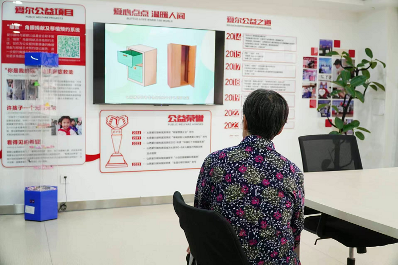 温爱花在太原爱尔眼科医院公益诊疗区。受访者供图